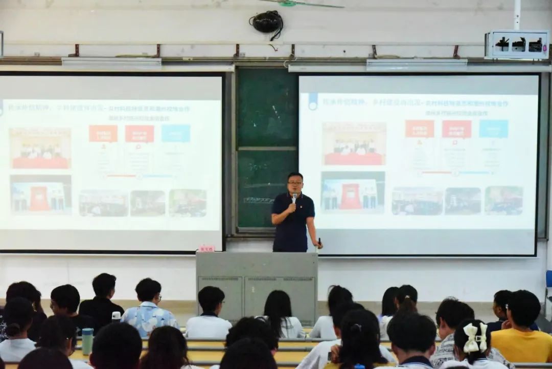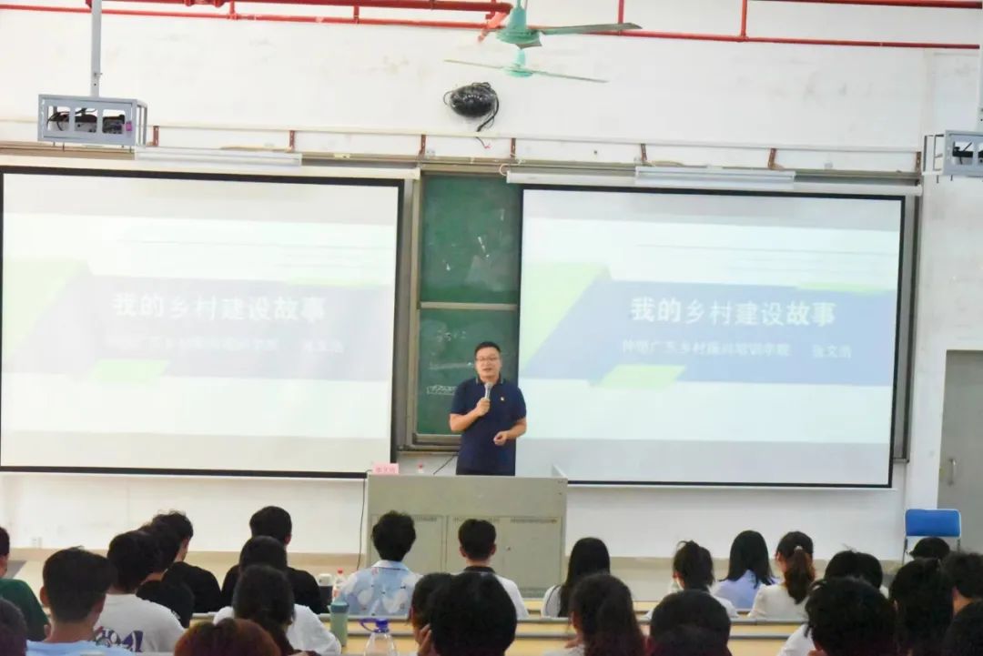 最后,张文浩向同学们介绍了关于“传承仲恺精神,乡村建设再出发”的主要内容,其中包括广东社工双百计划到双百工程、广东新农人培育、乡村科技特派员和潮州校地合作三个具体内容,列举出乡村建设的瓶颈和相关的具体解决方法。张文浩告诉同学们实现乡村振兴需要有不忘初心,牢记使命的思想。作为仲恺学子,更要舍得沉下心来体验和参与基层工作,投身祖国的伟大事业,为国家乡村振兴战略贡献出仲恺智慧和仲恺力量的觉悟。