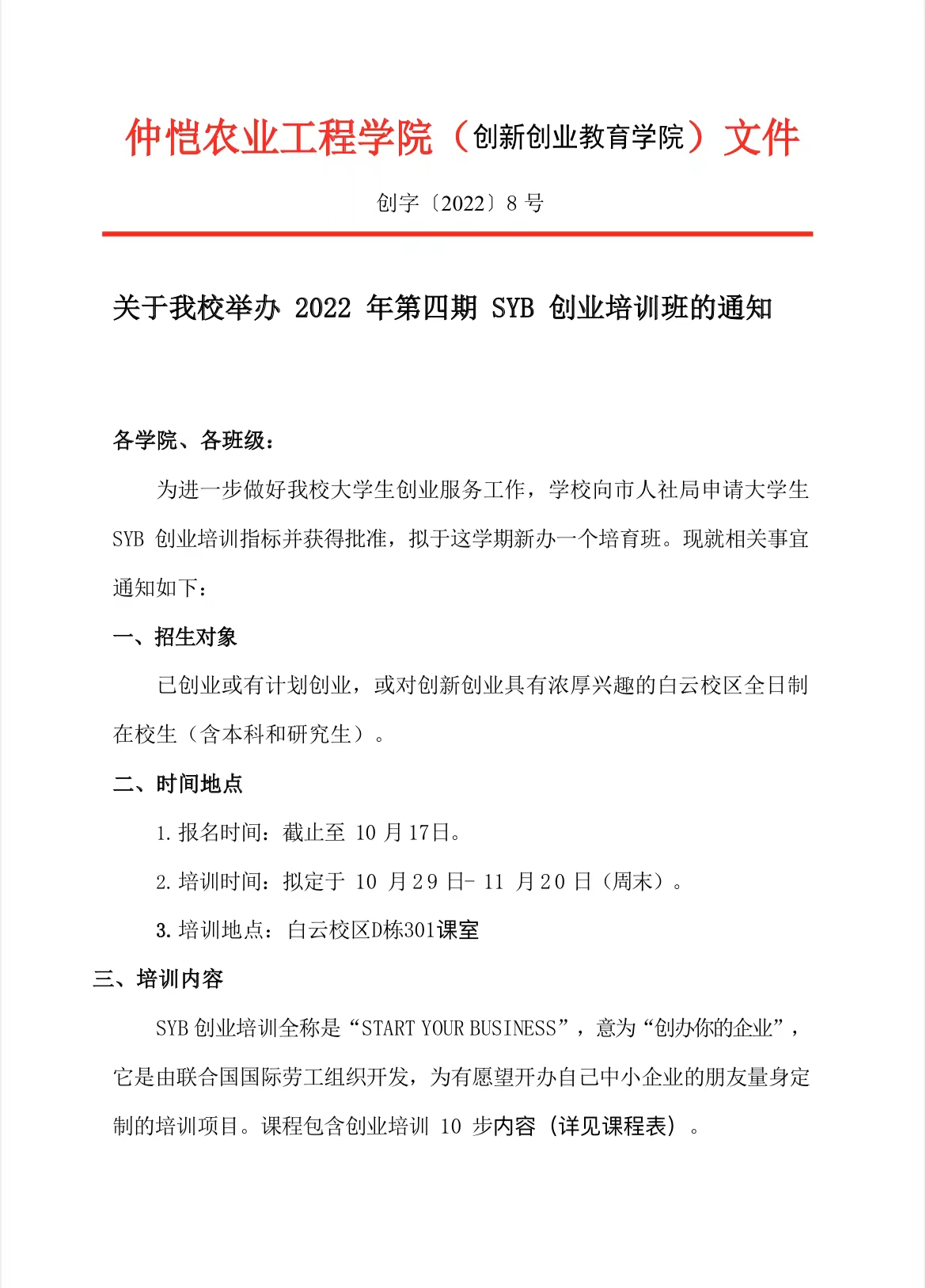 为进一步做好m88 app大学生创新创业指导教育工作,提高大学生创新创业能力,推进m88 app创业培训工作稳步前进,m88 app向市人社局申请大学生SYB创业培训指标并获得批准,现决定举办SYB创业培育班。