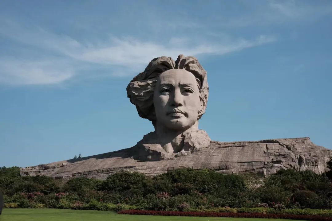 这是毛泽东青年艺术雕像,作为长沙橘子洲景区最大景观工程的青年毛泽东艺术雕塑以1925年青年时期的毛泽东形象为基础,雕塑伫立在长沙橘子洲头,突出表现毛泽东风华正茂的形象。雕像高32米,代表了雕像是以32岁的毛主席的形象所雕刻;长83米,寓意毛主席享年八十三岁;宽41米,寓意着毛主席执政41年,其雕像具有的特殊含义。