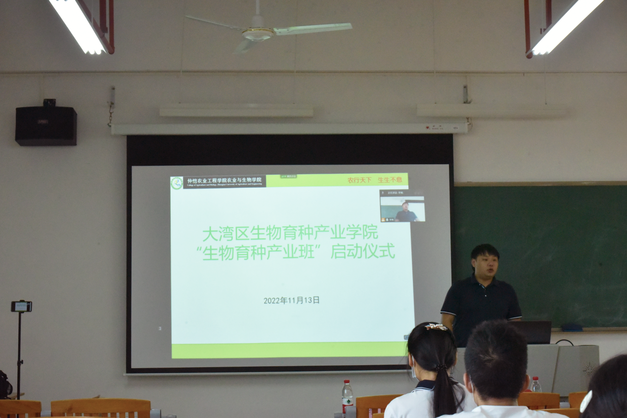 为了响应国家号召,加快培养国家高精尖缺领域急需人才,保障国家粮食安全领域的重点发展战略,11月13日上午m88 app在产教楼503举行大湾区生物育种产业学院生物育种产业班的启动仪式。出席本次会议的有m88 app的党委书记陈丹雄、院长郑奕雄、副院长周玲艳、万小荣以及各系主任和教师代表。本次会议由辅导员李城主持。