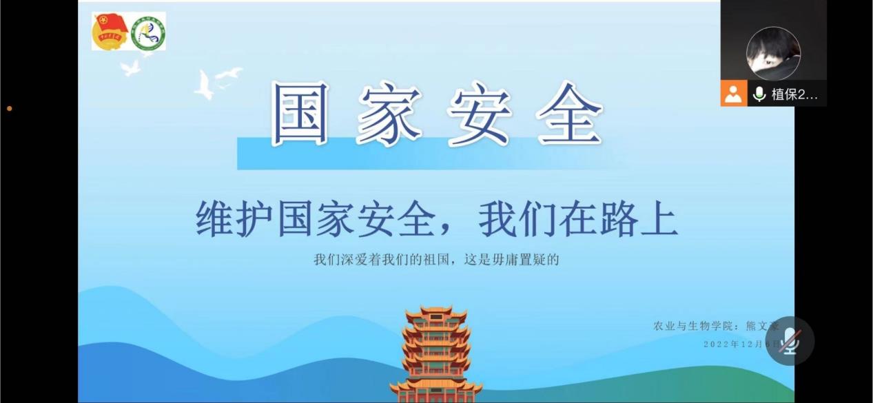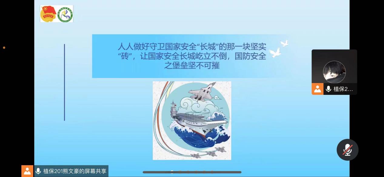 紧接着由熊文豪为同学们带来以“国家安全”为题的演讲。他分别从同学们身边的国家安全、什么是国家安全和怎么守护国家安全入手,为同学们分析了生活中的简单举动都可能影响到国家安全。他简要概括了国家安全体系涵盖的16种“安全”,他说到,同学们只有合力前行,才能让国家安全之长城屹立不倒,让国防安全之碉堡坚不可摧。