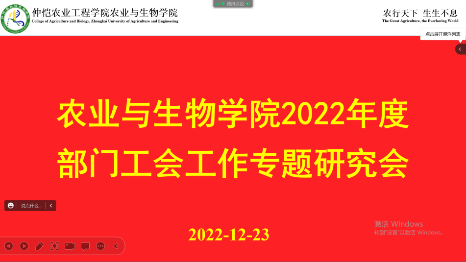 12月23日下午,m88 app党委在腾讯会议APP召开2022年度部门工会工作专题会议。会议由学院党委副书记周超雄主持,学院领导班子成员、学院工会主席及办公室副主任参会。