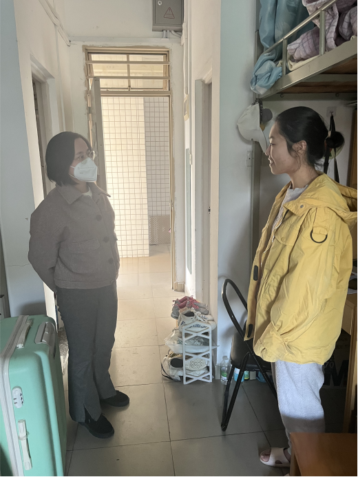 检查结束后,老师们与同学们进行了温暖亲切的交谈,关心地询问了同学们生活上遇到的困难和问题以及假期的去向,并叮嘱同学们在回家途中要注意安全,做好个人防护措施。
