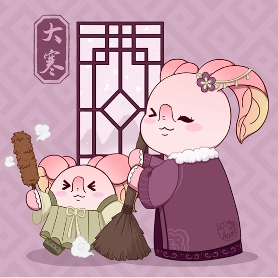 每年公历1月20-21日太阳到达黄经300°时为“大寒”。《授时通考·天时》引《三礼义宗》解释道:“大寒为中者,上形于小寒,故谓之大……寒气之逆极,故谓大寒。”极言大寒之冷。这个气节处在三九、四九时段,此时寒潮南下频繁,是一年中的最寒冷时节,也是一年中雨水最少的时期。民谚云:“小寒大寒,无风自寒。”大寒,是天气寒冷到极点的意思。它是一个生机潜伏、万物蛰藏的时令。