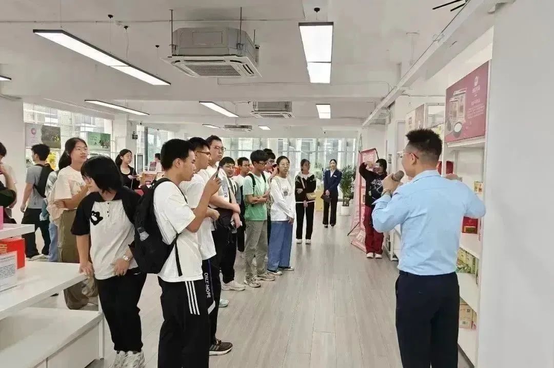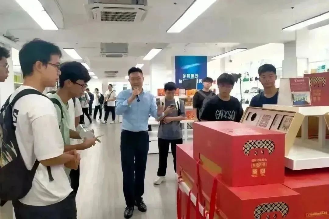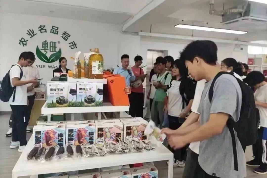 随后,粤旺农业集团聂东立带领大家参观粤旺农业名品超市,同学们不仅参观到了各地区的农业名产品,还了解到了农业名品超市(线下)结合“乡村振兴执行官直播间”(线上)的运营方式。粤旺农业名品超市,让同学们对各地重要的农产品和预制菜行业有了深刻的理解,激发了对大农业产业链的一二三产的各个环节的浓厚兴趣及初步理解。面对富有地方特色的云南拇指糯和黑糯,同学们也表达了自己的兴趣及意愿,希望在今后的学习过程中在自己的试验田可以种出这些优秀品种,分享农业成果。同时,工作人员也谈到这些优秀产品研发背后离不开科学家的力量,离不开人才的支撑,并希望同学们学好知识,知农爱农,为我国农业发展贡献自己的力量。