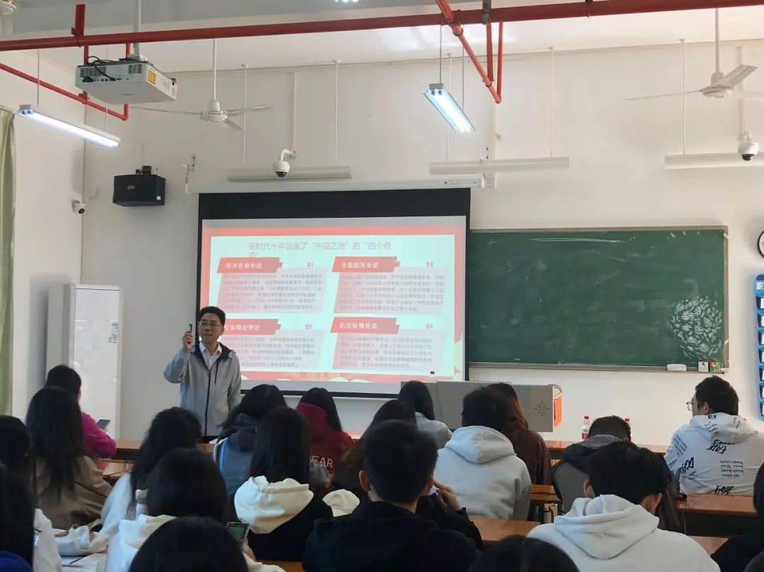 课上,周超雄从八个部分深入剖析了以中国式现代化推进中华民族伟大复兴的必要性和重要意义。以中国式现代化全面推进中华民族伟大复兴是中国与世界的、是人民与时代的发展答案,决定着中国的发展方向与前途命运,影响着国际问题的解决,关乎着人民的幸福、时代的进步。同时,课堂上回顾了我国全面建设社会主义现代化国家的历史进程与成果,让同学们了解了党的十八大以来的伟大发展历程,深刻学习了“两个确立”对中华民族伟大复兴的决定性意义。