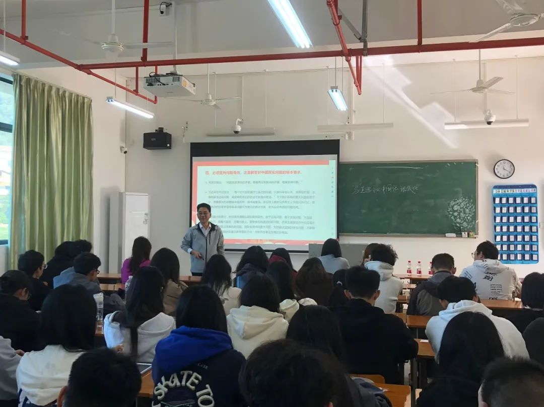 一个民族要走在时代前列,就一刻不能没有理论思维,一刻不能没有科学思想指引。周超雄强调,作为当代青年,不仅需要学习专业知识,提高自身综合素养,还需要加强党先进理论知识的学习。课堂上他向大家介绍了马克思的中国化和时代化必须做到“两个结合”、继续推进实践基础上的理论创新需要把握好习近平新时代中国特色社会主义思想的世界观和方法论,做到“六个坚持”。接着,他还通过介绍中国式现代化的核心要义、本质要求与各项战略部署,引发了同学们对于“作为一名农科学生应如何为实现中华民族伟大复兴而努力”这一问题的思考。