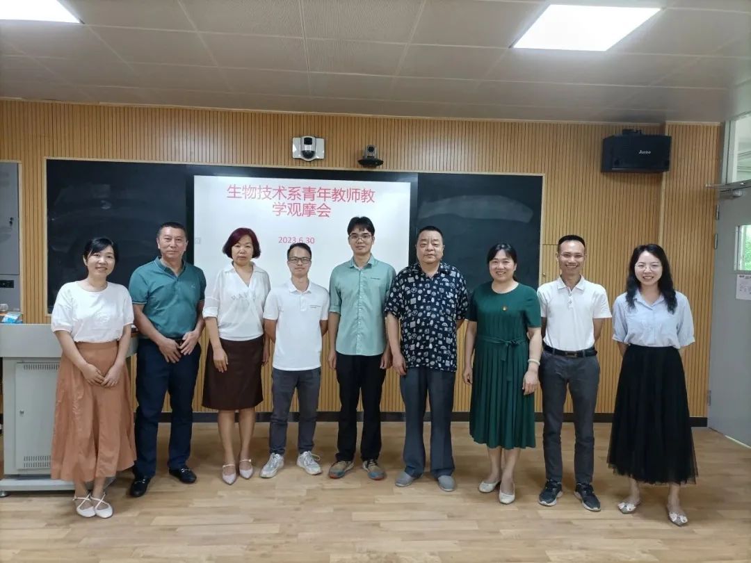教师是教育的关键人员,所以加强师资培养规划、全面提升教育教学能力,是为学生“传道、授业、解惑”的重要环节。因此,为加强生物技术系青年教师教学技能,强化思政元素融入、耕读传教和基础知识传授;2023年6月30日下午,生物技术系在海珠校区教学楼401课室开展了新入职青年教师教学观摩会。