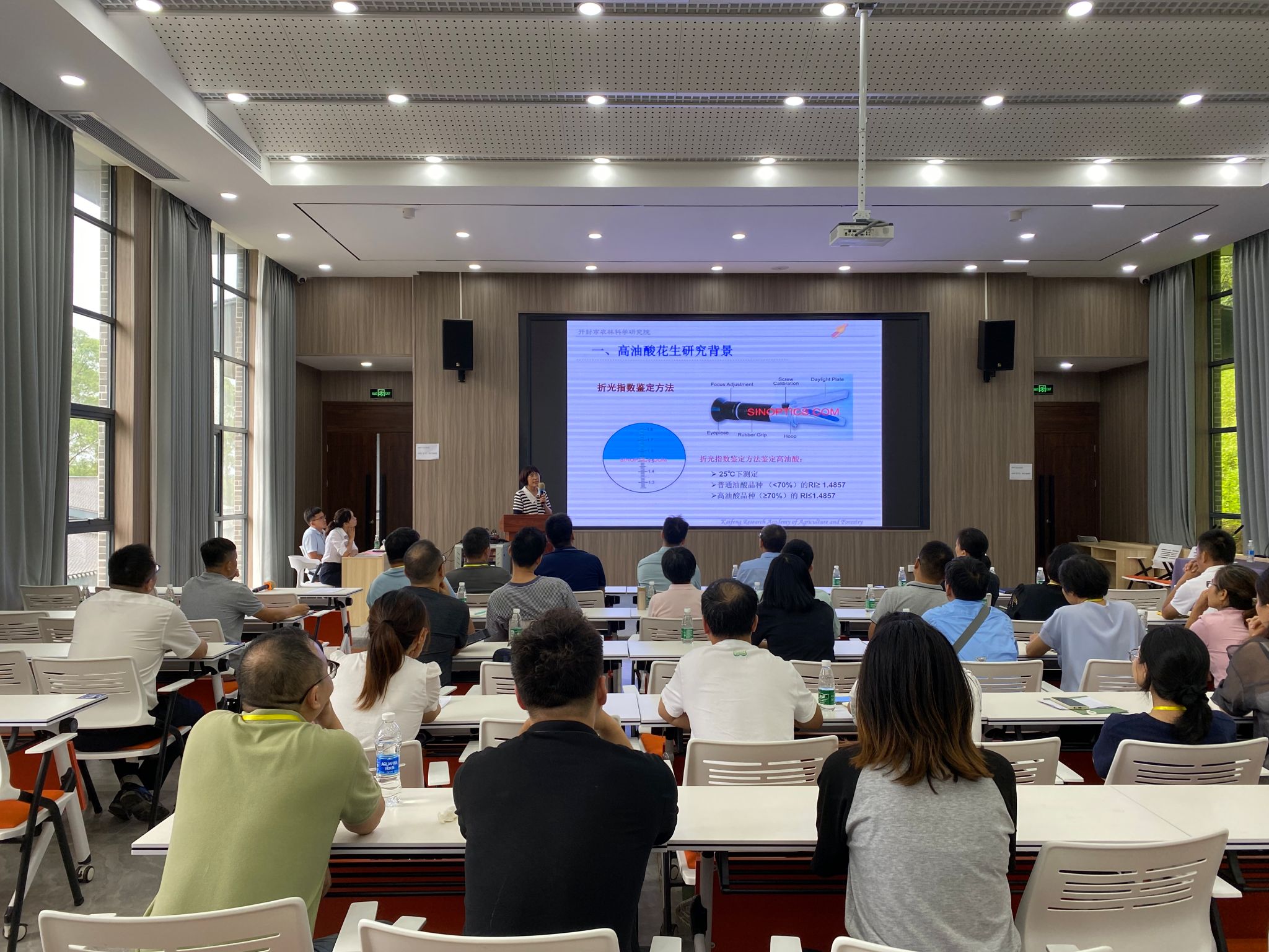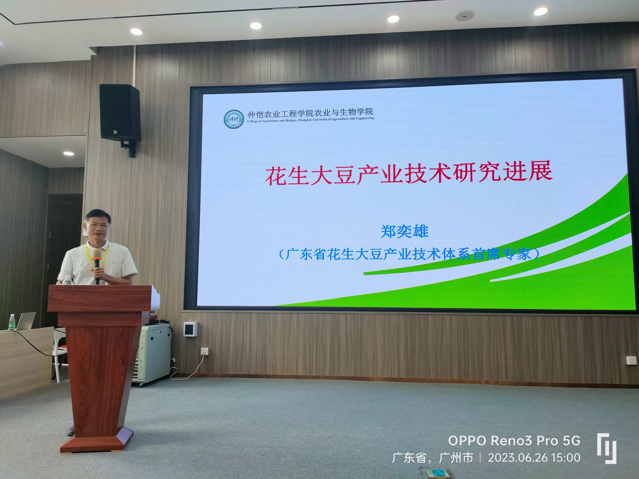 出席会议领导与嘉宾、国家花生产业技术体系、省花生大豆产业技术体系等组织的专家代表们踊跃地作了学术交流,积极探讨科技合作方式和路子。多名行业大咖分享了各自的研究成果和进展:全国高油酸育种优势单位河南省开封市农林科学研究院副院长、国家花生产业技术体系开封综合试验站站长任丽研究员作了《高油酸花生育种研究进展》报告,山东省花生研究所副研究员孙全喜博士作了《我国花生种质资源创新利用研究进展》,国家大豆和油料产能提升工程专家指导组成员、广东省花生大豆产业技术体系首席专家、m88 app现代种业创新研究院执行院长郑奕雄教授作了《花生大豆产业技术研究进展》,省花生大豆产业技术体系花生种业岗位专家、广东省农业科学院作物研究所副所长洪彦彬研究员作了《花生种业岗位专家创新团队研究进展》等。与会其他代表也踊跃发言,交流探讨现代花生种业发展现状、存在问题与前瞻性对策。