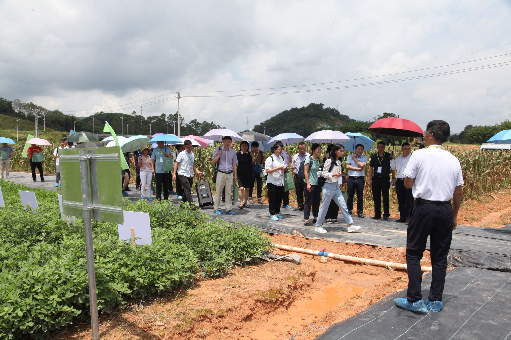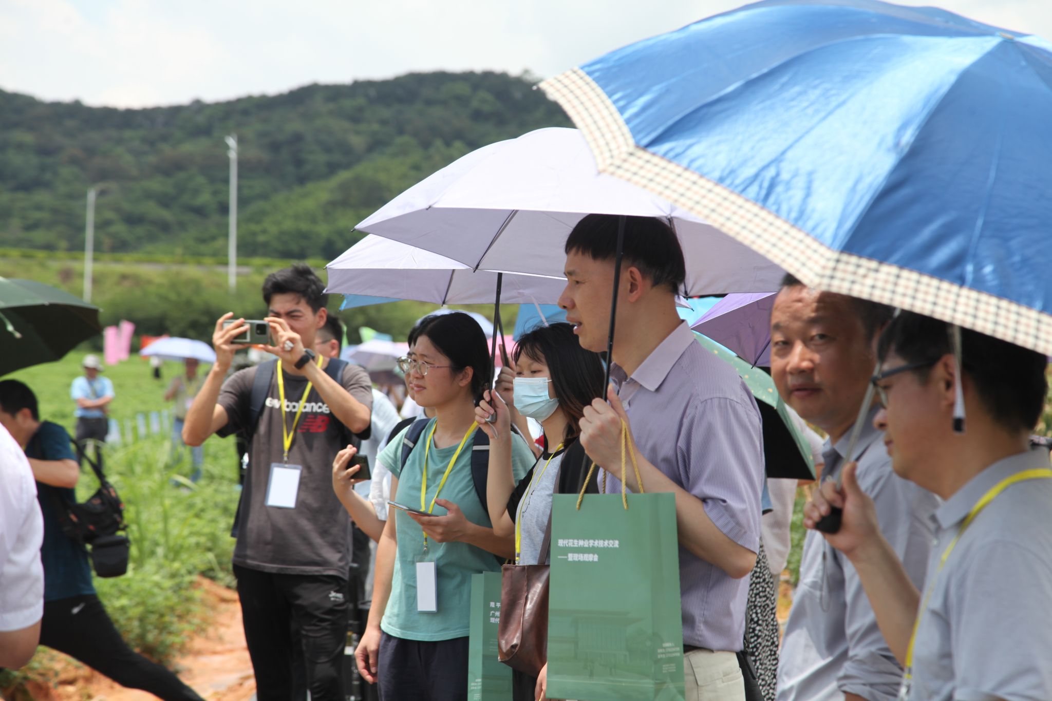 开幕式之后,与会代表顶着炎炎烈日、兴致勃勃移步黄埔现代种业(农作物)产业园花生种业样板区种植现场观摩,植保无人机一直在种植现场上空盘旋进行飞防展示,郑奕雄教授、王旭东教授和唐荣华研究员轮番讲解了田间展示的花生新品种、新技术和新模式,为代表们和观摩农户提供接地气的花生科技成果。