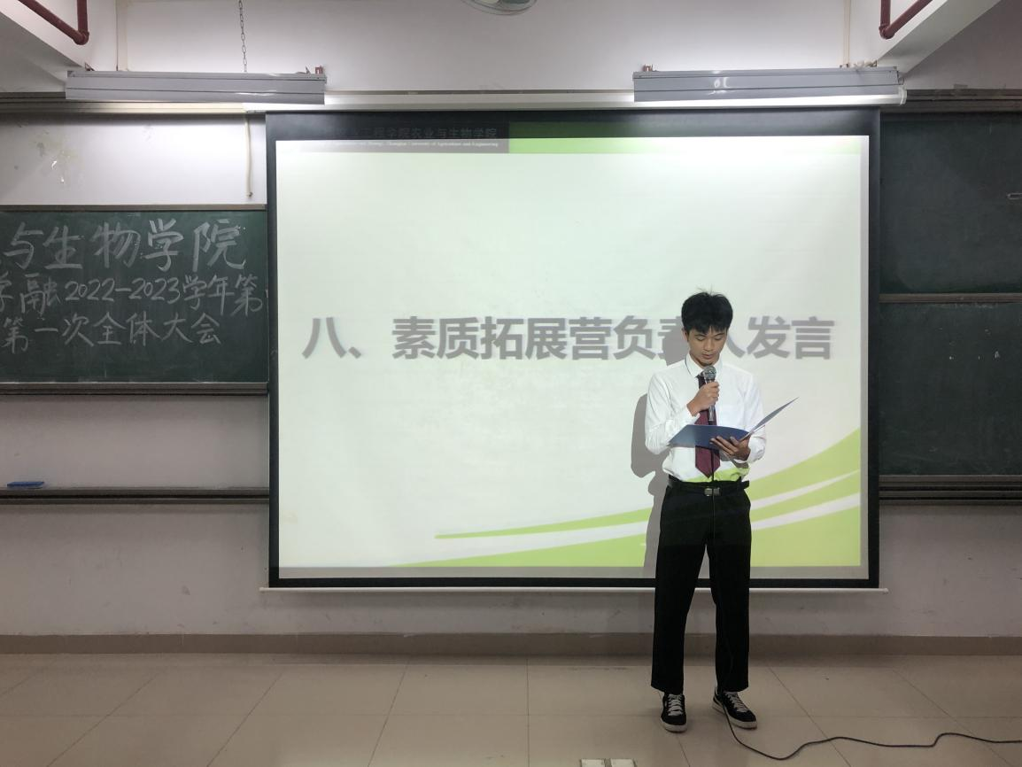 随后吴煜麒代表素质拓展营进行发言。他表示,成立素质拓展营旨在为农生院的同学们提供一个展现自己,发现自己的平台。他希望在大家的共同努力下,素质拓展营能更好地调动全院学生的积极性,为学院的发展贡献出自己的一份力量。