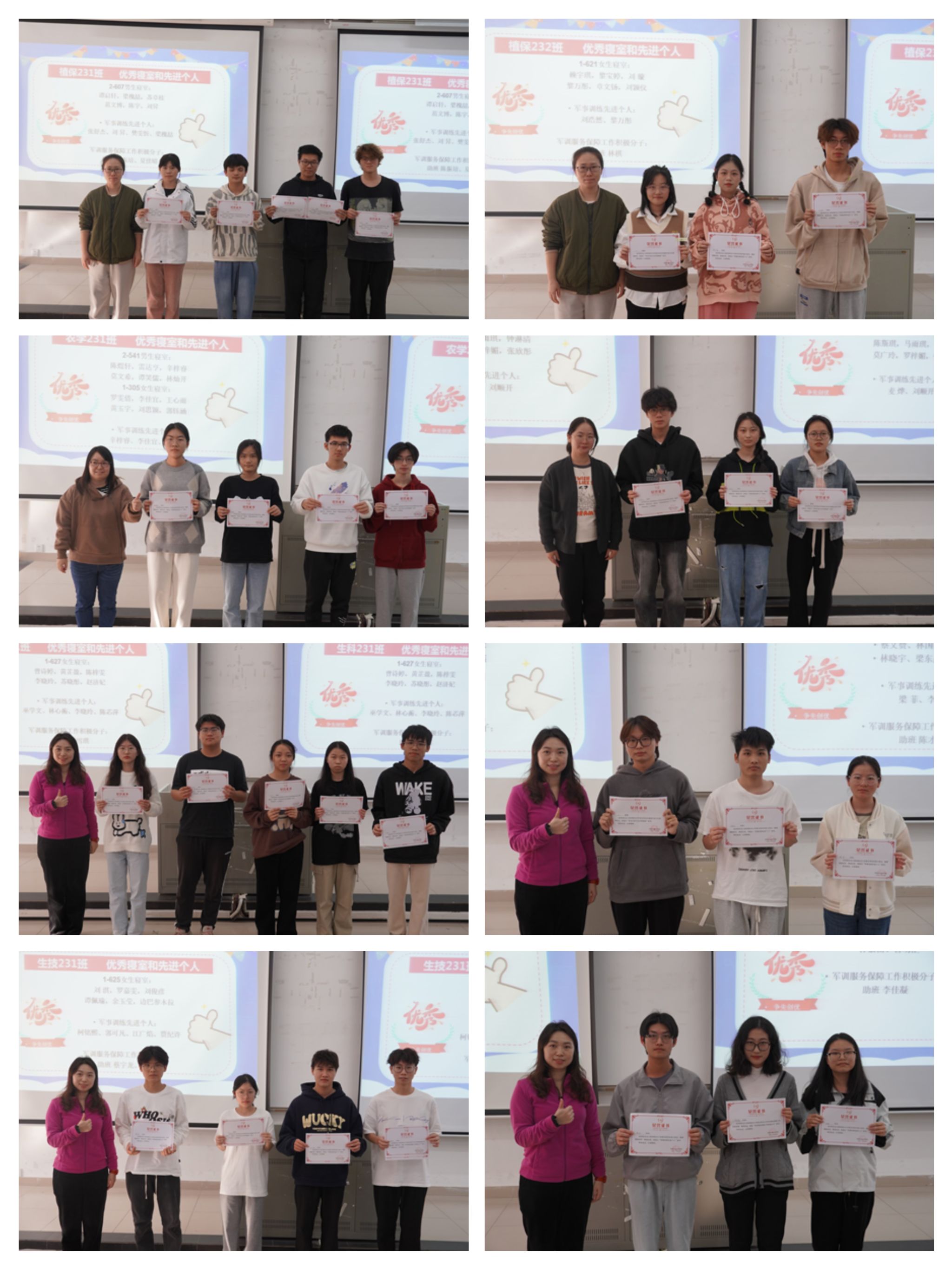 会上,对军训工作的先进集体和先进个人、优秀寝室进行了表彰,由班主任为获奖班级和学生颁奖。邝健睿表示,希望获奖的班级、宿舍和个人要继续发扬在军训期间形成的良好作风和精神品质,充分发挥模范带头作用,争当年级好榜样。