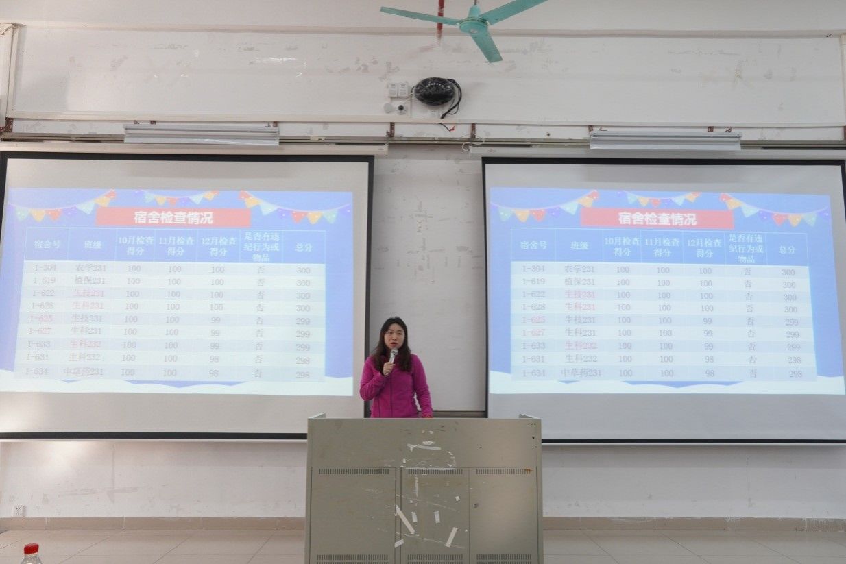 接着,农学、种科、植保、生技、生科、中草药专业八个班的班长分别进行了学期总结汇报,主要内容包括班级介绍、班风建设、班干部履职情况、成长与收获、思考与建议等。邝健睿对各班的汇报依次进行了点评,对各班给予了充分肯定并对班委们的辛勤付出表达了真诚感谢和由衷赞扬。