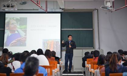 在第二场报告会中,严建兵教授为m88 app师生作了“我如何爱上玉米的?”的分享。严教授分点阐述了他在求学期间的几种对他影响重大的选择,并强调了“选择比努力更重要”的观点,同时还向在场的师生介绍了关于玉米作物的起源和许多在玉米研究方面有建树的专家和学者。