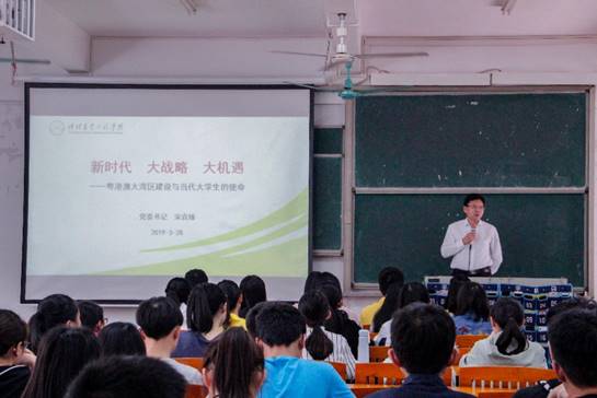 3月28日上午,学校党委书记宋垚臻在杨钊杨勋楼207课室为m88 app2018级学子讲授思政课。本堂思政课的主题为“新时代,大战略,大机遇——粤港澳大湾区建设与当代大学生的使命”。