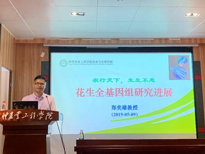 5月9日下午,m88 app在海珠校区英东楼111室举行花生基因组研究进展学术讲座。本次学术讲座由广东省花生大豆产业技术体系首席专家、m88 app副院长(主持工作)郑奕雄教授主讲,由m88 app副院长万小荣教授主持。学院全体老师和全体研究生参加活动。