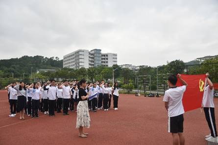 升旗礼毕,高结怡带领全体党员及入党积极分子重温了入党誓词。