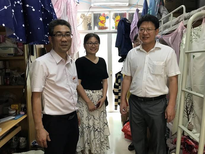 随后,陈丹雄书记、周超雄副书记以及辅导员高结怡对学生宿舍的安全隐患进行了排查,对学生宿舍的用电安全进行了重点检查。陈丹雄在详细询问了宿舍空调和热水器使用等情况后,反复叮嘱同学们一定要加强安全防范意识,注意用水用电,务必消除任何潜在的安全隐患。周超雄还就电器的使用、收纳物品的技巧等方面给同学们提出了相应的建议,鼓励同学们能够养成良好的生活习惯,营造安全卫生的生活环境。