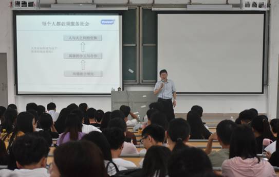 讲座开始,徐晓海以“民以食为天”为中心,提出“农业永远存在消费”的观点,并给同学们分享了自己当年专业选择的过程。他根据国家农业的产值和从业人数、农业专业人才的比例等数据提出了农业无论在现在还是未来都缺人才的观点。随后,徐晓海给同学们详细介绍了农业产业的特点和趋势,他指出,目前我国农业的发展趋势良好,未来会有无限的前途,同学们要以长远的目光来看待农业和农村的未来。
