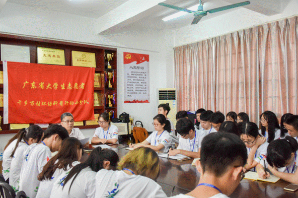 接着,周超雄向大家传达了2019年大学生志愿者暑期“三下乡”社会实践活动的主题——青春心向党,建功新时代。他强调了爱国思想教育的重要性,并指出,作为当代青年大学生,应该到农村一线、到基层去倾听民众的心声,了解民众的情况,学习基层干部的工作方法,将课堂从课室搬到社会中去。