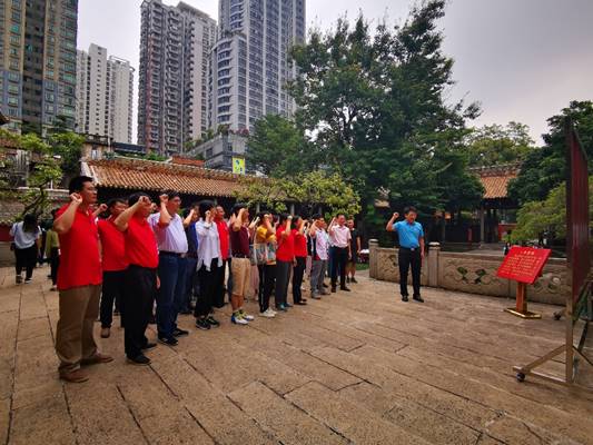 在农讲所纪念馆,陈丹雄同志带领党员们重温入党誓词,铿锵有力的誓言彰显了全体党员矢志不渝的初心。随后,陈丹雄同志带领党员们认真听取相关陈列的介绍,瞻仰毛泽东同志塑像,详细了解我党早期领导人办学讲学培养革命骨干的光辉历史。