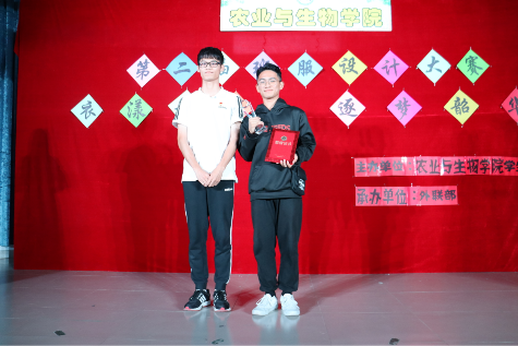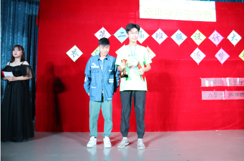 团委学生副书记佘梓健为种科192颁发最佳人气奖                      学生会主席吴润新为植保191颁发三等奖