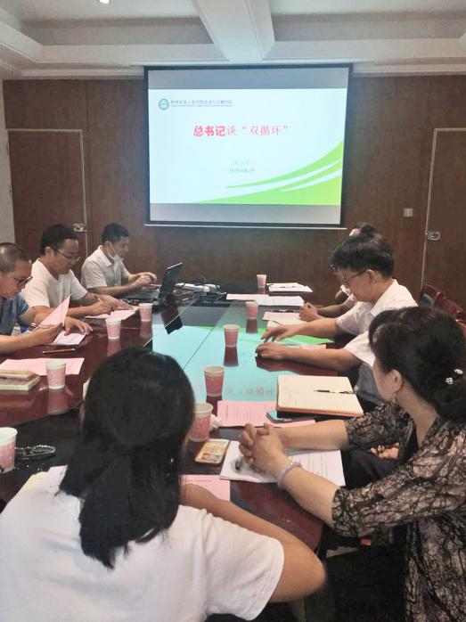 首先是第一议题学习。党总支委员万小荣以《习近平谈“双循环”》为题,围绕什么是“双循环”战略、“双循环”战略提出的国际国内背景以及实施“双循环”战略的关键等三个方面进行讲解,使与会人员认识到“双循环”战略是以国内大循环为主体、国内国际双循环相互促进的新发展格局。
