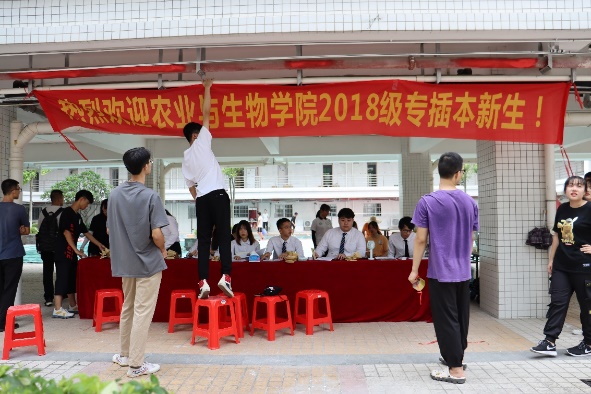 当天一早,农生院团学主要干部与志愿者们早早来到三栋宿舍一楼架空层处进行迎新摊位的布置,为迎接新生做准备。各部门分工明确,有条不紊。布置摊位的工作人员团结协作,让即将到来的新生和家长们感到眼前一亮,感受到学院的热情。