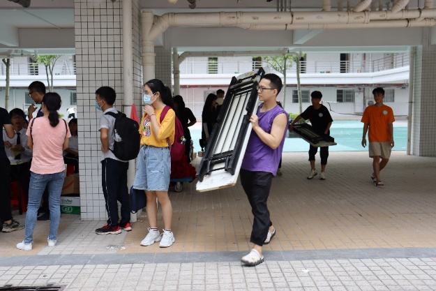 志愿者们顶着炎炎烈日,分布在学校前门以及澳门桥,翘首盼望即将到来的新生,并为他们指引报到路线、搬运行李,志愿者们用自己的热情驱散了新生初来乍到的陌生与不安。