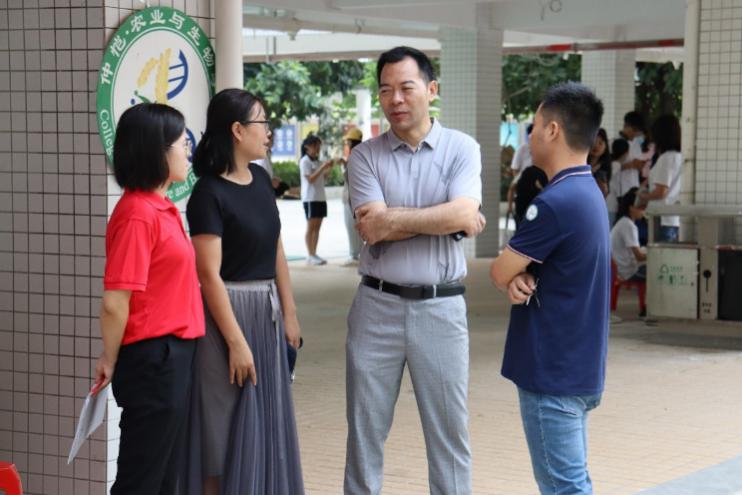 当天上午,学校党委书记宋垚臻一行莅临m88 app迎新现场,在m88 app党总支书记陈丹雄、副书记周超雄的陪同下,视察指导m88 app迎新工作。同时,他们听取了m88 app领导对新生报到工作开展情况的汇报,并对m88 app迎新工作的顺利开展表示充分的肯定。