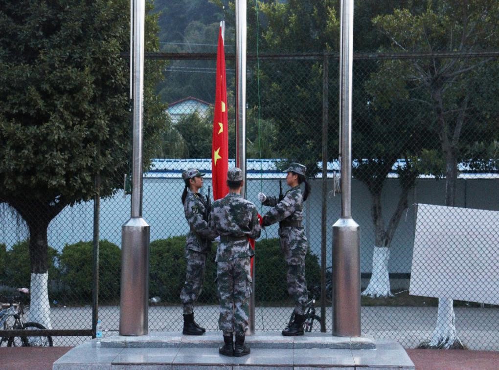 升旗仪式开始,伴随着庄严的国歌声,五星红旗在旗手手中冉冉升起。师生们肃立注目,向着国旗致以崇高的敬意。