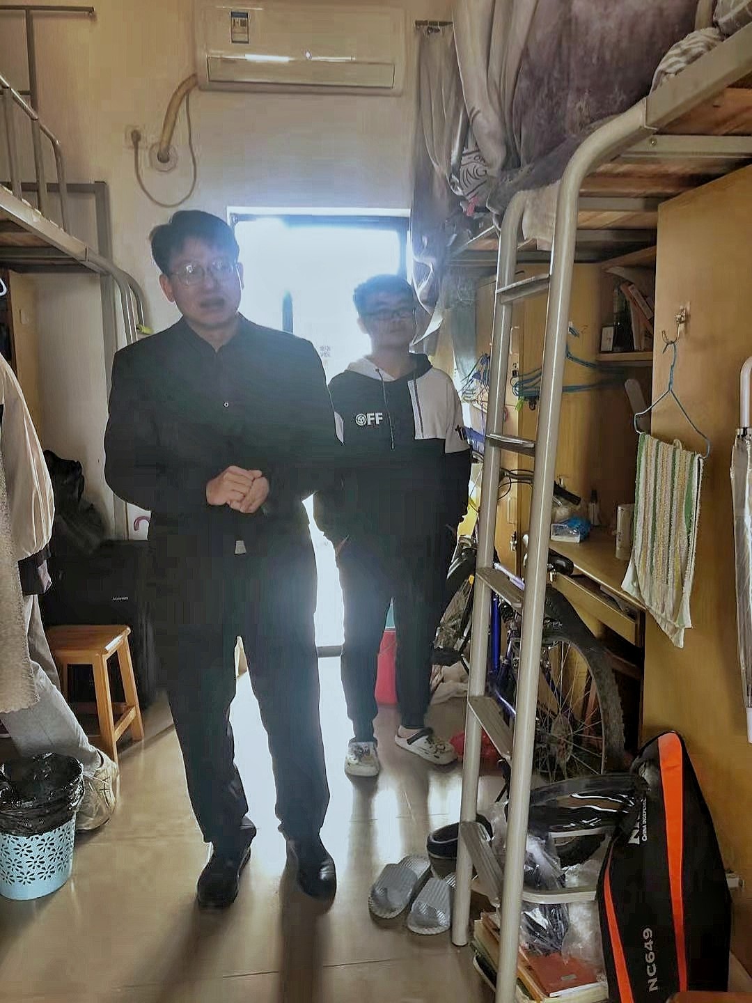 周超雄也对学生们做出了三点提醒:一是要注意宿舍卫生,保持干净整洁的生活环境。二是要重视自己的学业发展和学习成绩,拥有更好的成绩才能保障将来拥有更多的发展选择。三是要珍惜在校学习时光,尽早确立目标,无论是升学还是就业都要全力以赴,不负青春美好时光。