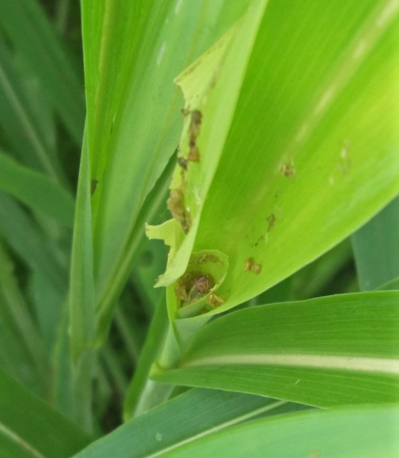 4月初,恰逢玉米拔节期,也是草贪(草地贪夜蛾)肆虐之时,一不留神,草贪泛滥,一季的努力就毁于一旦。通过现场诊断,目前田间草贪头数不多,尚处于初期,及时用药防治,能够做到有效防控。
