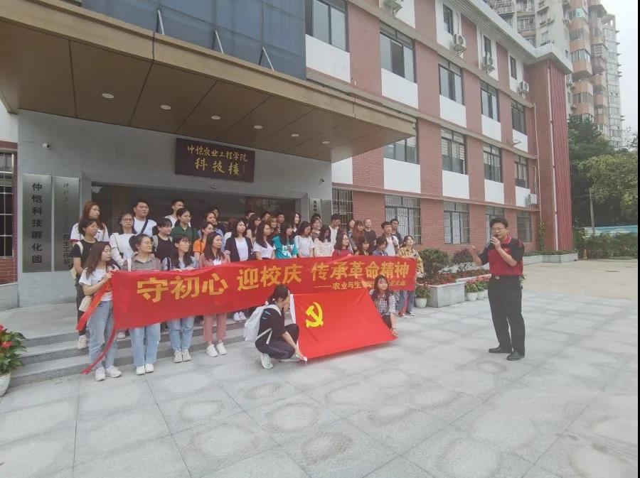 陈丹雄带领师生党员走进了仲恺科技孵化园,向同学们详细地介绍了学校的办学历史,带领大家领略了“十三五”发展成绩、“十四五”发展目标,以及学校的宏伟蓝图规划。他强调,广大青年学生要结合校史学党史,始终牢记“注重实践、扶助农工”的办学理念,努力成长为知农爱农新型人才,助力乡村振兴发展。