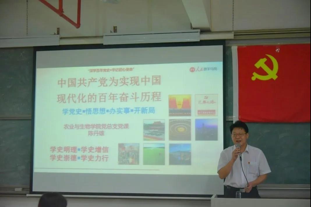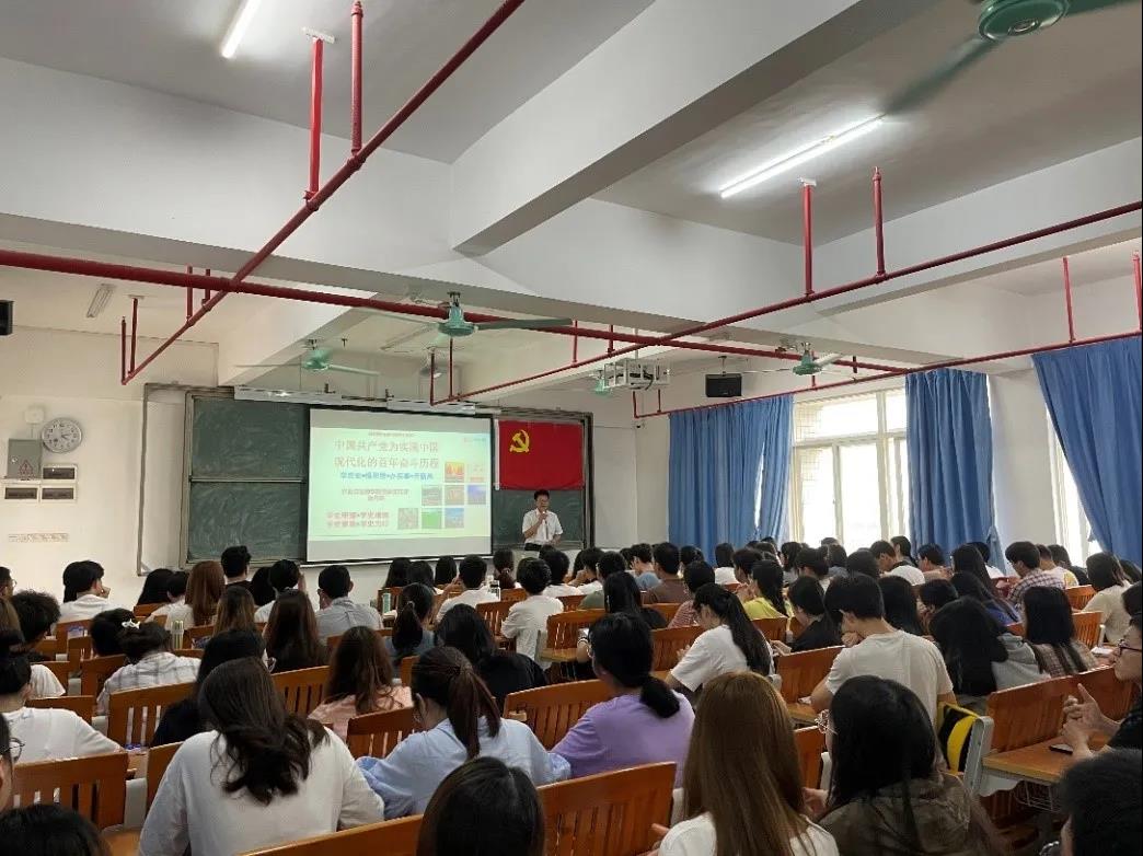 4月7日上午,m88 app学生党支部在综合楼D栋704室开展了“中国共产党为实现中国现代化的百年奋斗历程”的主题党课。本次党课由学院党总支书记陈丹雄主讲,党支部书记孙晓芳、苏登出席,m88 app学生党员、发展对象、积极分子参加了本次党课。