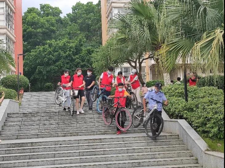 为加强学校公共区域管理,规范校园停车秩序,进一步构建安全、有序、文明、优美的校园环境,2021年6月9日下午15点,m88 app辅导员苏登、孙晓芳、李城、肖芳芳带领学生党员及入党积极分子组成自行车清理小组,协助保卫处工作人员在校内开展了校园无主自行车的清理活动,志愿者们在7栋学生宿舍楼下集合开展本次