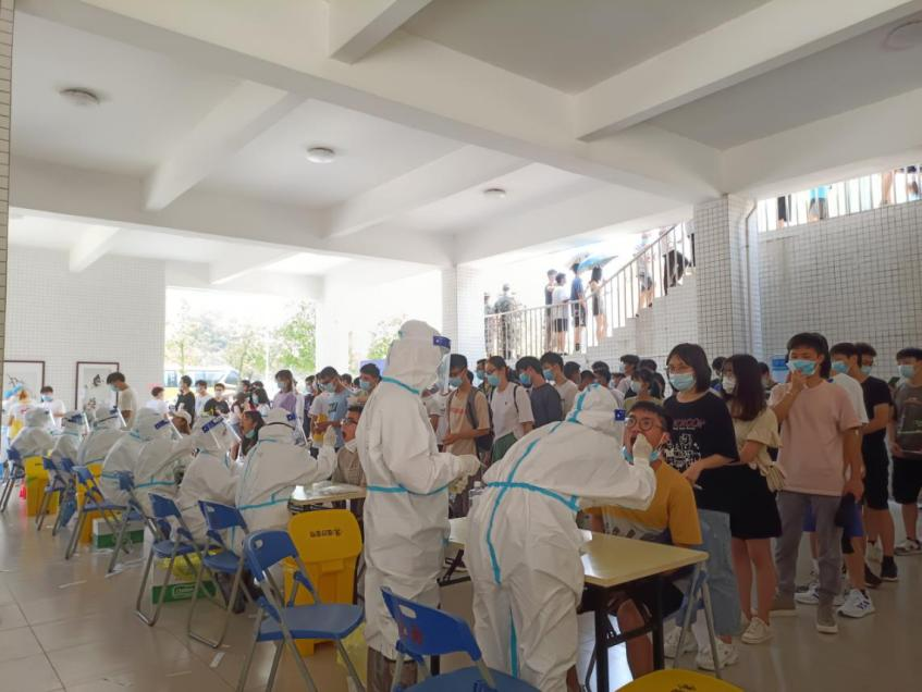 近日,广州新冠疫情骤起,牵动着全国、全省人民的心。根据白云区疫情防控指挥部开展全员核酸检测工作要求,同时为了进一步确保全校师生的安全与防控疫情,学校于6月4日晚至6月5日中午开展了全员核酸检测工作。m88 app积极配合学校相关工作的安排部署,组织号召全体学生进行核酸检测,安排志愿者整合队伍、维持秩序,有力的确保了全院在校学生共1200多人次的核酸检测工作于6月5日顺利完成。