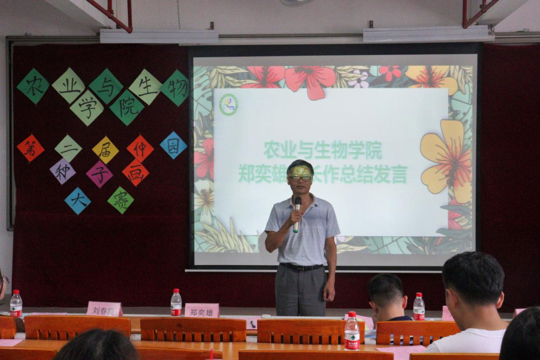 最后,郑奕雄进行比赛总结发言,他赞扬同学们在构图上勇于构思,敢于创造,能够在结合现实的基础上鲜明突出作品主题,且又各具特色。同时他向同学们提出了三点建议:一、提升构图上的把握。二、可以运用黄金分割论来调整各元素比例的分配,让作品中心清晰明了。三、通过运用种子的摆放以及覆盖度来使色彩丰富饱满。