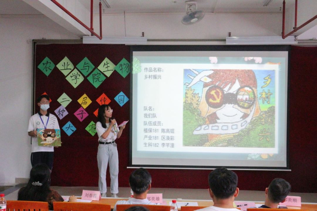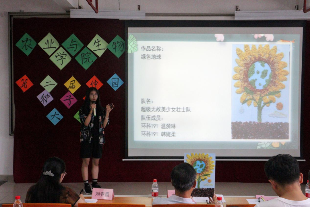随后,进入决赛的20支来自不同学院的队伍开始进行作品介绍。不仅如此,为增强同学们对种子知识的了解,比赛中场还设置了小游戏环节。在全部队伍进行完作品解说后,刘春霞老师对此一一做了点评。