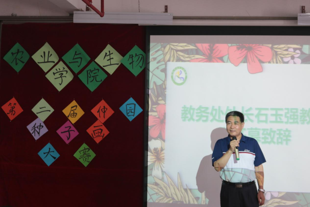 石玉强为大赛开赛致辞。他强调,种子画比赛能够更好地提高同学们的创新能力,鼓励同学们在比赛中大胆运用自己的奇思妙想去表达主题。他相信,只要大家全力以赴,种子画大赛一定能够越办越好。