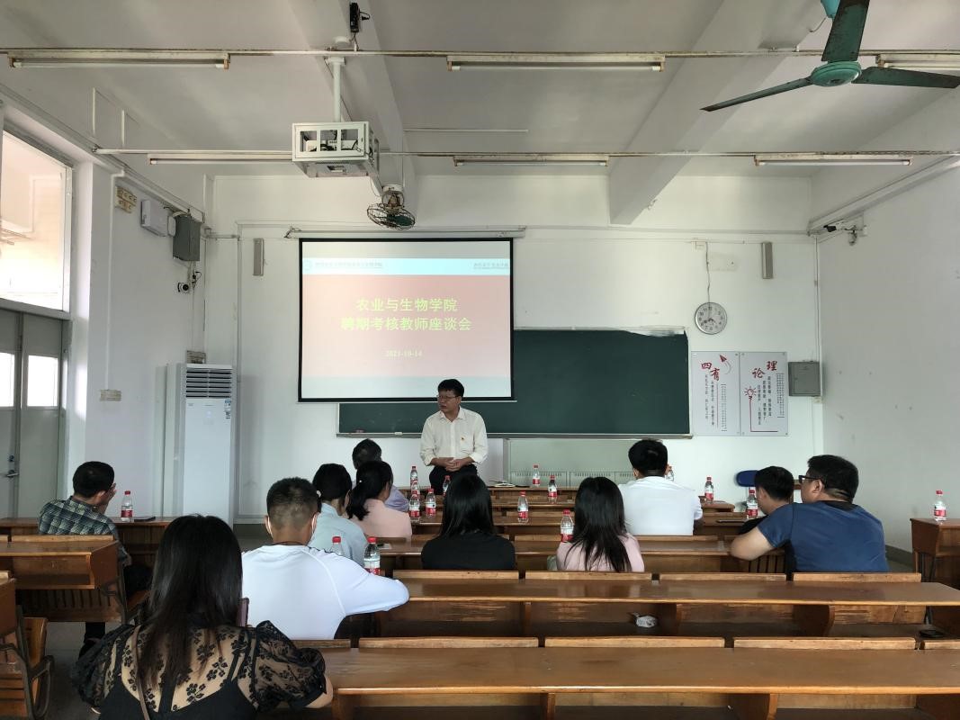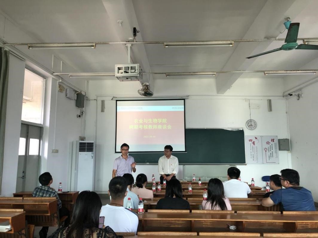 10月14日下午,m88 app在海珠校区教学楼B701室召开高层次人才聘期考核教师座谈会,学院党政班子成员及学院2018~2019年引进的13名年薪制人员和优秀博士参加会议。会议由学院院长郑奕雄主持。