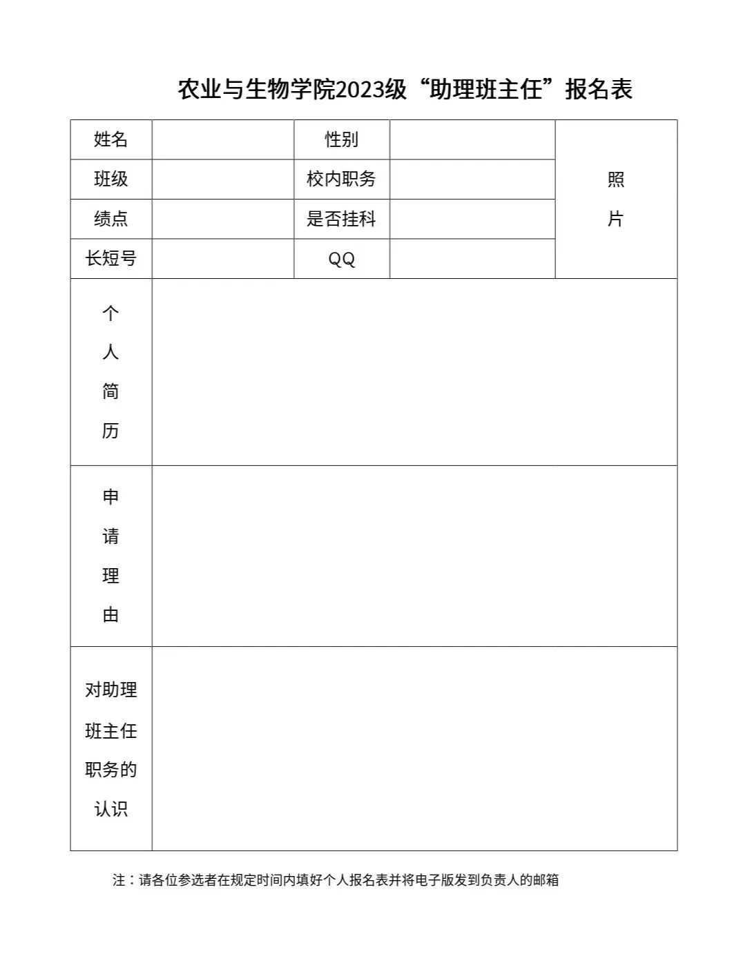 文件备注:班级姓名(例如:生科231:XXX-m88 app2023级“助理班主任”报名表)。