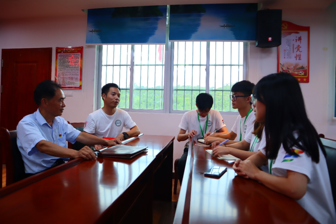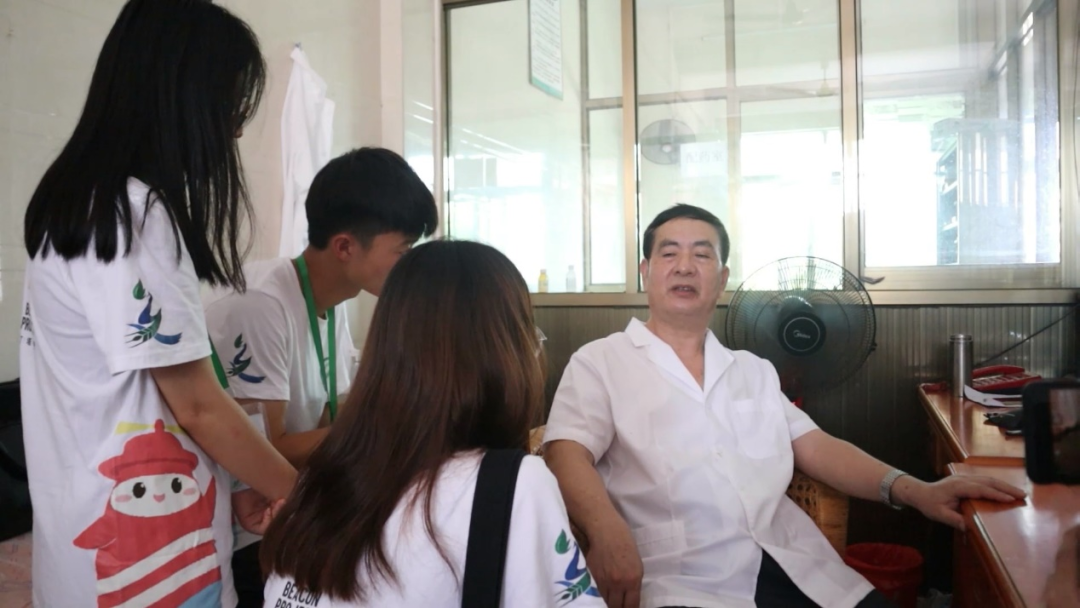 随后,在当地政府人员的带领下,来到了转水镇黄龙村,对当地村医、退役军人及老党员——钟汉清进行了访谈。在访谈中,钟汉清同志向同学们讲述了自己在家乡的故事。他看到了家乡缺医少药,村民看病十分艰难,甚至因此失去生命的情况,那时他毅然放弃就业机会,选择扎根农村,救死扶伤。他心系家乡,主动捐款只为推动家乡建设发展。他心系病患,把治病救人当作自己的义务,遍访全村了解健康情况,面对患者都尽己所能给予最大的帮助。同时钟老还和大家分享了他自学中医专业的经历并勉励大家一定要珍惜学习机会,努力学习、把握机会,取得优异的成绩,将来到党和人民最需要的地方去,即使在平凡的岗位上也能发出耀眼的光芒!