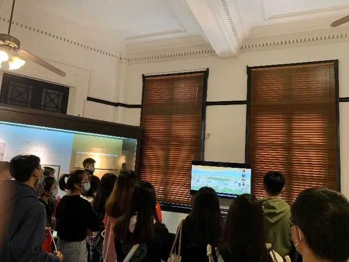 老师和学生党员们认真听讲解员介绍粤海关博物馆