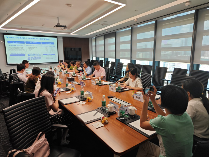 座谈交流环节,腾讯公司相关负责人介绍了“腾讯高校人才培养方案”合作项目进展情况。腾讯公司在紧跟国家政策:深化产教融合的背景下,运用“互联网+”思维,发挥“互联网+”技术优势,强化校企合作和产业引领,深度服务教育行业,为打造可持续发展的人才培养模式贡献力量。双方党员代表围绕如何运用大数据、人工智能平台助力农业生产和高质量发展进行了交流发言。