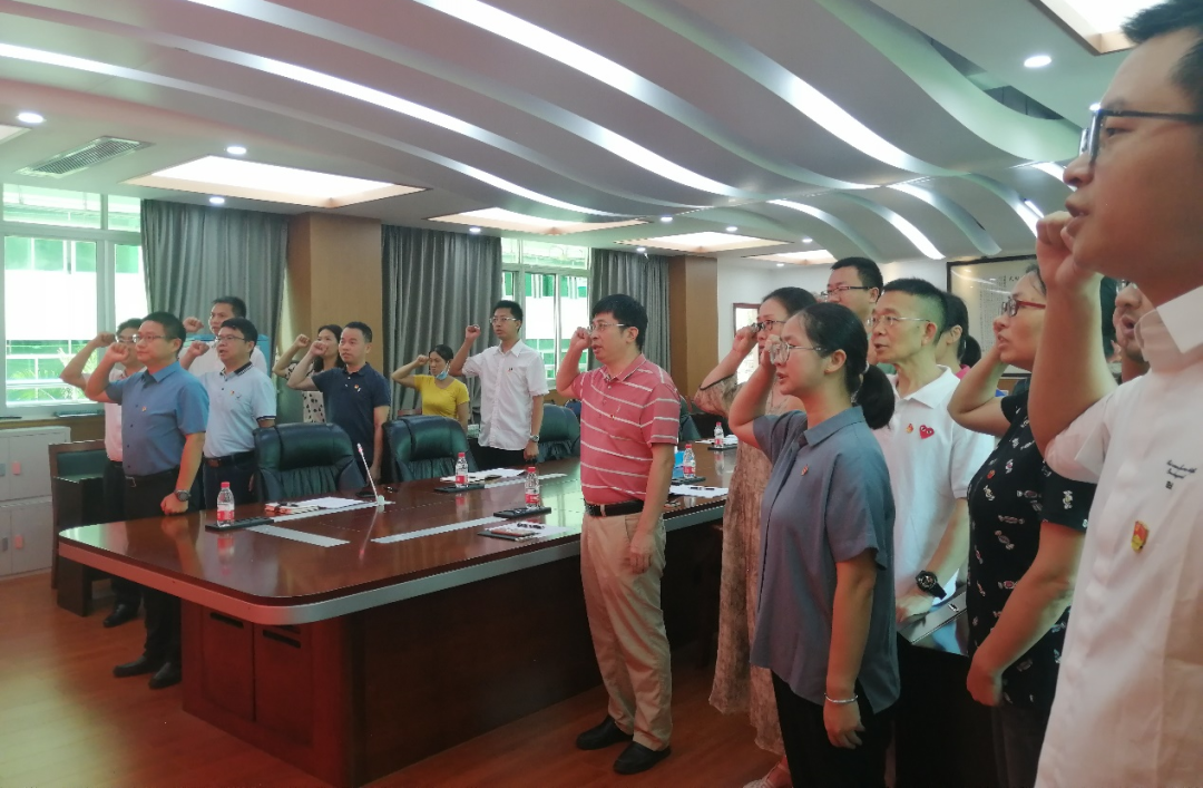 接着,由廖明校长带领全体党员重温入党誓词。廖明校长带领全体党员面向鲜红的中国共产党党旗,举起右拳,重温入党誓词,用铮铮誓词宣示了马克思主义信仰、共产主义信念以及对党和人民的忠诚,赓续中国共产党人的精神血脉,以实际行动庆祝党的102岁生日。