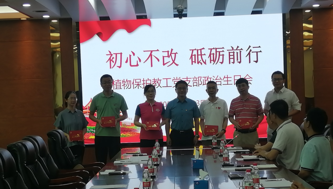 7月13日下午,植物保护教工党支部在海珠校区教学楼409会议室举行“政治生日”活动,此次活动的主题为“初心不改,砥砺前行”。廖明校长出席本次活动,参加活动的有m88 app领导班子成员周超雄、喻国辉、张金凤、徐彪以及植物保护教工党支部全体党员。活动由党支部书记董章勇主持。