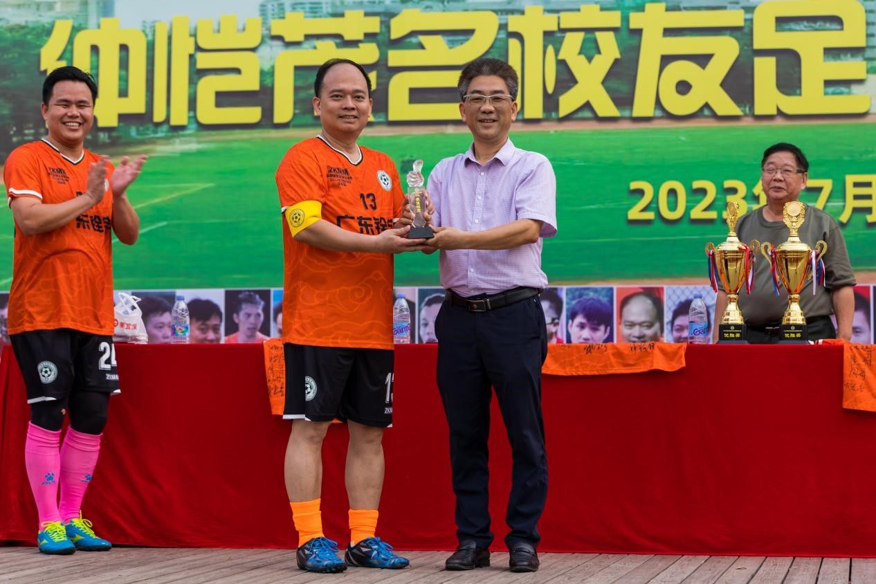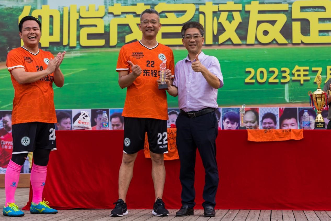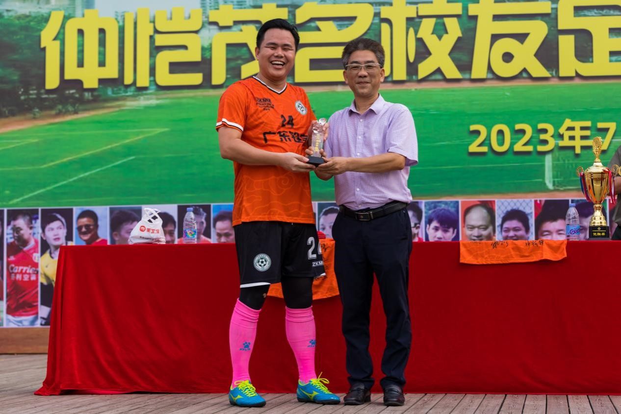 赛后举行了简单的颁奖仪式,周超雄和王子明为校友队、嘉宾队和球员代表分别颁发了纪念奖杯。本次仲恺校友足球巡回赛(茂名站)活动取得了圆满成功。
