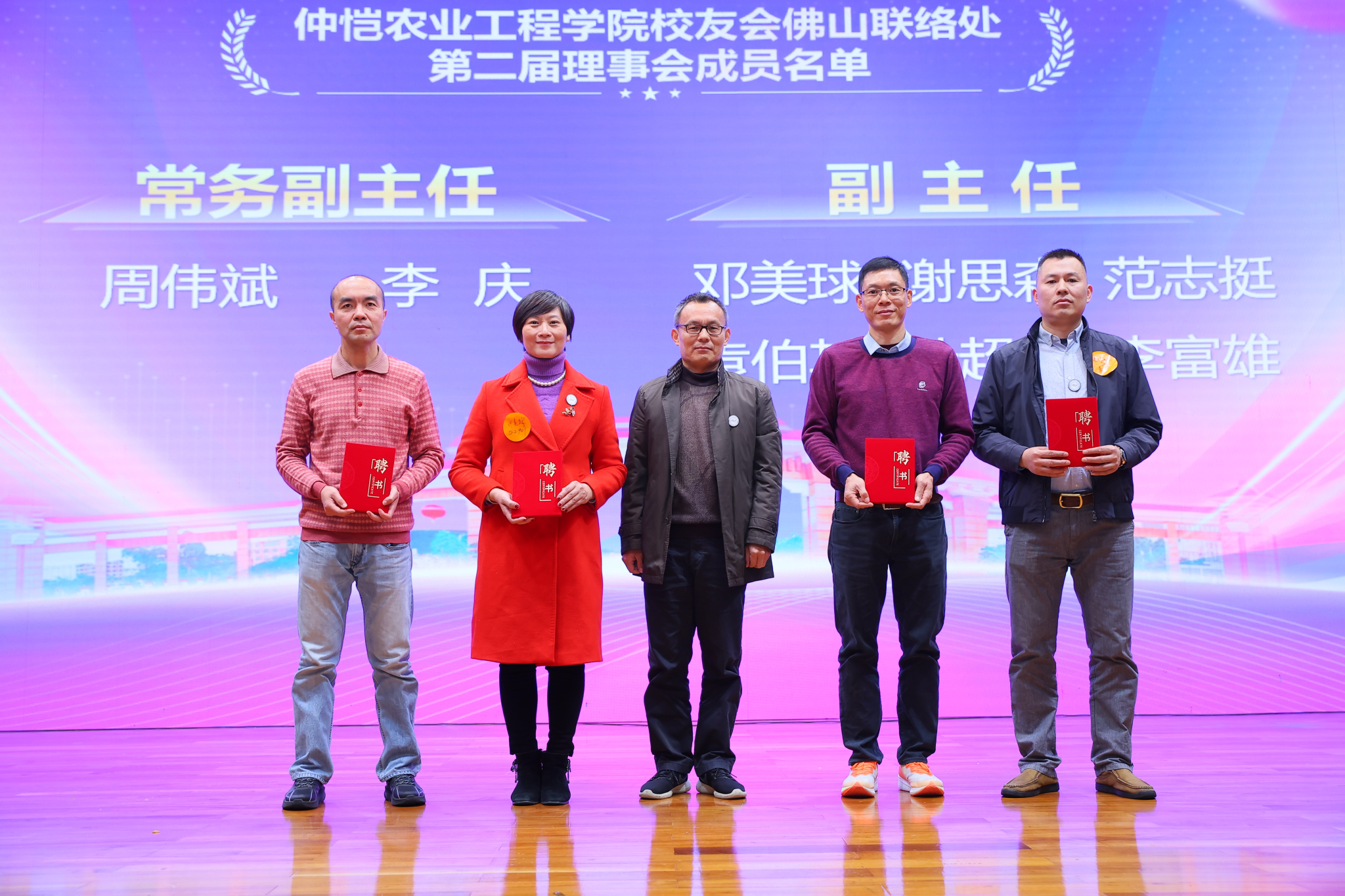 学校党委常委、宣传统战部部长、校友事务部部长曾献尼宣读《关于同意m88 app校友会佛山联络处换届的批复》,经佛山联络处换届大会选举产生学校校友会佛山联络处第二届理事会构成人员,郑志民、苏活连、陈小冠任荣誉主任,黄开晨任主任,周伟斌、李庆任常务副主任,邓美球、谢思森、范志挺、袁伯其、叶超宏、李富雄任副主任,宋勇任秘书长,关燕萍、杨志正、吴耀开、梁锦灿、赵西东、柯亚龙、黄慧敏任副秘书长,邓敏超、庞明、蔡育霞、张骏辉、邝晓君、黎文健任联络员。宋垚臻书记、张文峰副校长为新一届理事会成员颁发聘书。