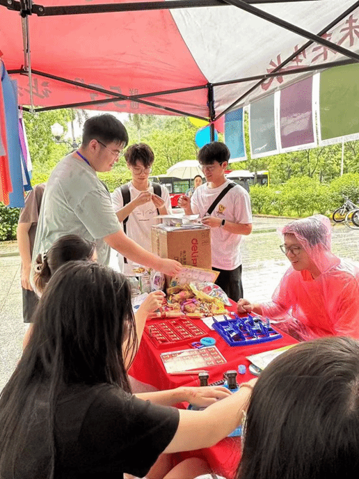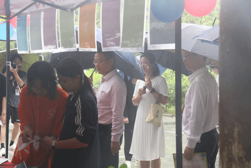 活动期间,廖明校长一行莅临现场与同学们亲切交流。辅导员邝健睿与心康部工作人员向校长一行介绍了学院心理活动摊位的亮点与特色,从心理学的角度帮助同学们了解心理问题,关注心理文化。廖明校长对各类心理小游戏的设置表示充分肯定,希望学院能进一步推广和普及,让更多的同学能在体验游戏的过程中舒缓压力、调节身心,健康快乐地成长。